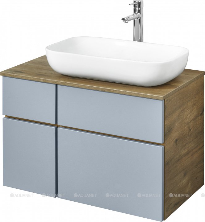 Тумба Мишель 80 дуб рустикальный/фьорд, подвесная + Умывальник MILA 35*50 в Комсомольск-на-Амуре