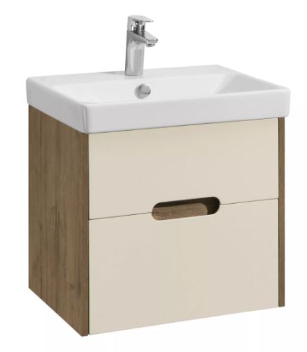 Тумба Оливия 55 бежевый/дуб веллингтон, подвесная + Умывальник Адриана 55
