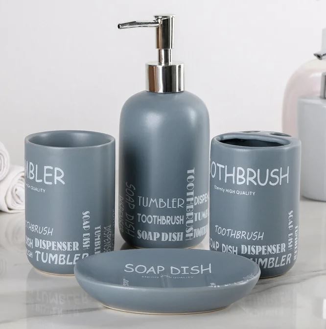 Набор аксессуаров д/ванной 4 пр "Надписи", серый 3623105 в Комсомольск-на-Амуре