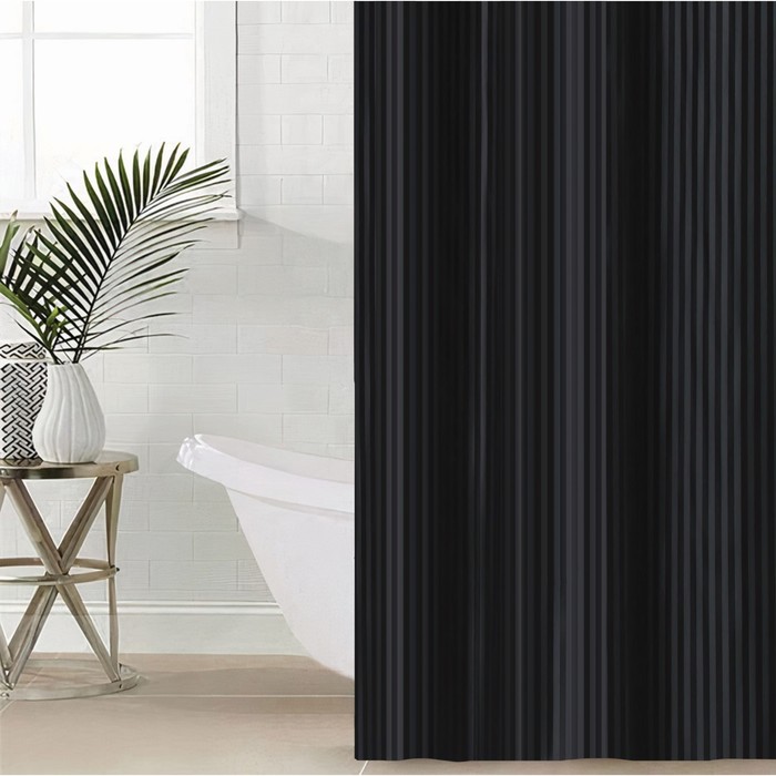 Штора д/ванной в полоску черная 180*200 9748882 в Комсомольск-на-Амуре