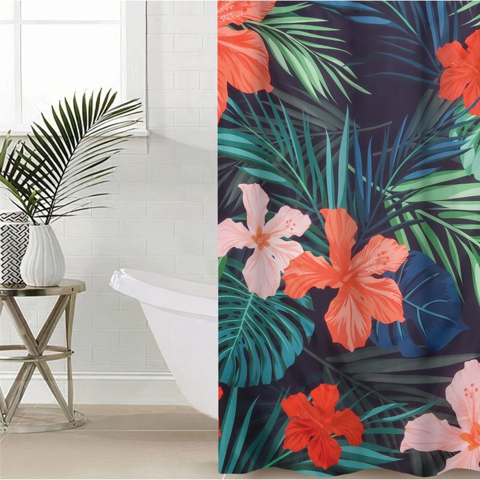 Штора д/ванной "Тропики" 180*180 см с люверсами, полиэтилен 7087220 в Комсомольск-на-Амуре