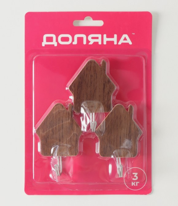 Крючок на липучке "Деревянные домики", 3 шт, цвет темное дерево 4587445 в Комсомольск-на-Амуре