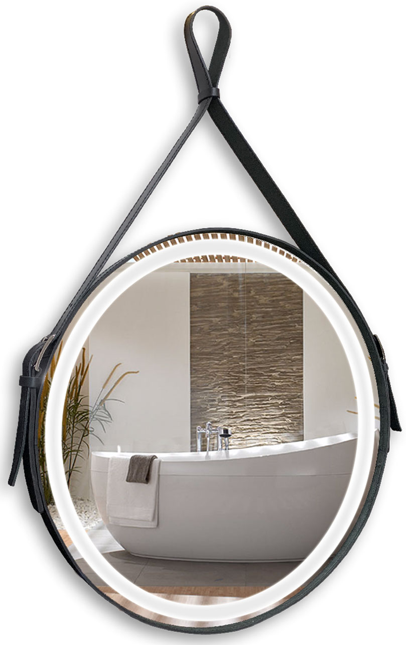 Зеркало Капитан D710 мм, выкл. - датчик на движение, черн. кожа в Комсомольск-на-Амуре