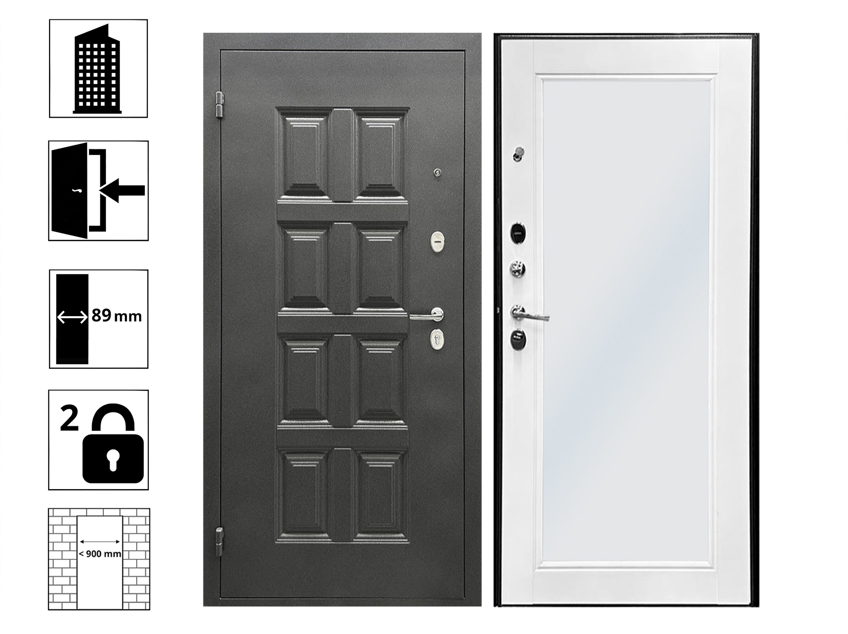 Дверь мет. ФАКТУМ графит/арктик зеркало 860 L в Комсомольск-на-Амуре