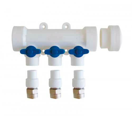 Коллектор резьбовой Ду 20х20х15*3 ВР-НР с кранами латунь Aqualink в Комсомольск-на-Амуре