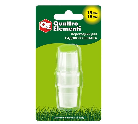 Адаптер QUATTRO ELEMENTI предназначен для соединения двух шлангов, позволяя таким образом увеличить длину шланга. Переходник изготовлен из пластика. Адаптер прочно фиксирует шланги, исключая протекание.