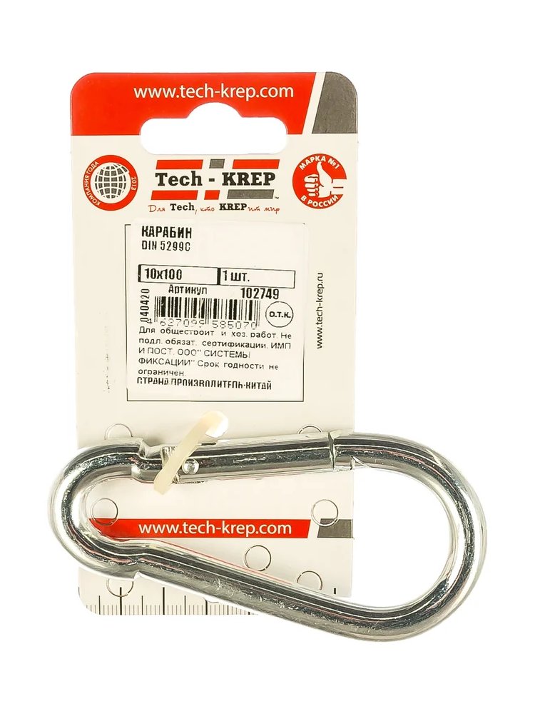 Карабин 10х100 мм DIN 5299 (1 шт) - ярлык Tech-Krep