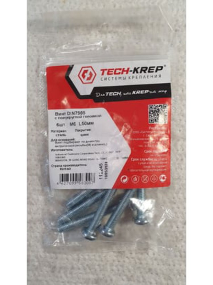 Винт DIN7985 с полукруглой головкой оцинк. M6х50 (6 шт) - пакет Tech-Krep в Комсомольск-на-Амуре