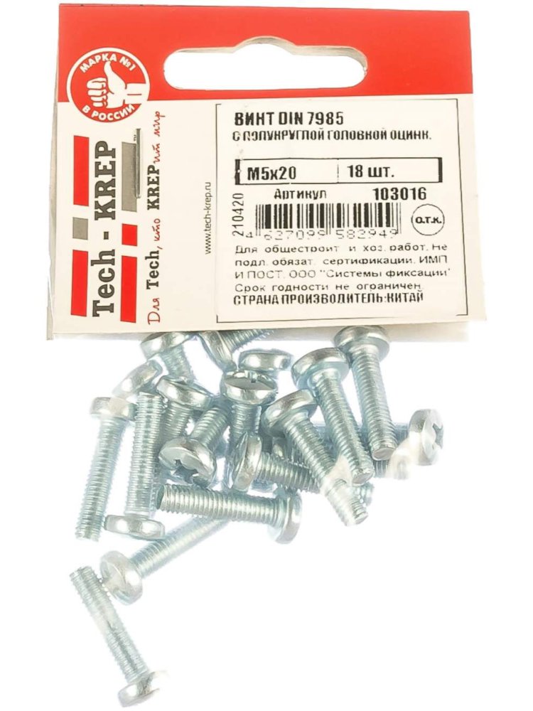 Винт DIN7985 с полукруглой головкой оцинк. М5х20 (18 шт) - пакет Tech-Krep в Комсомольск-на-Амуре