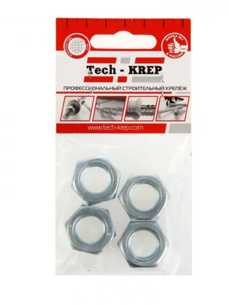 Гайка DIN934 шестигранная оцинк. М16 (4 шт) - пакет Tech-Krep