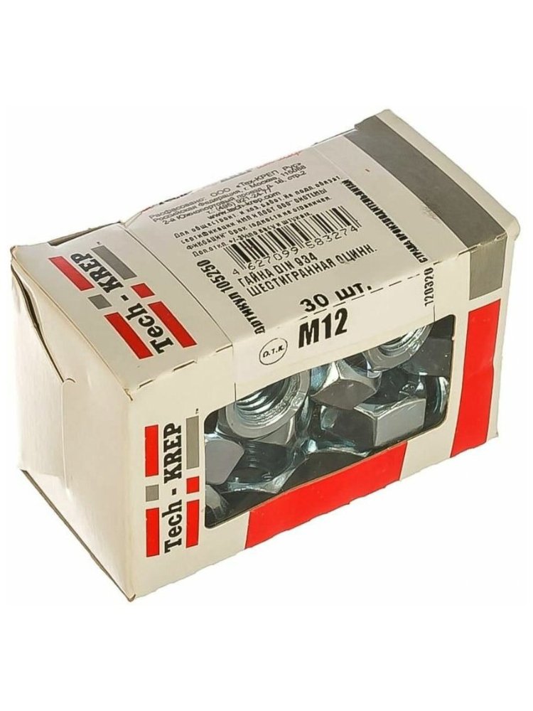 Гайка DIN934 шестигранная оцинк. М12 (30 шт) - коробка с ок. Tech-Krep в Комсомольск-на-Амуре