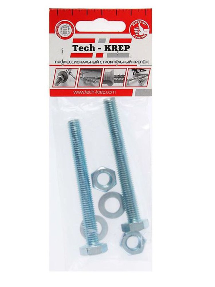 Болт DIN933 с шестигранной головкой оцинк. М10х70 + гайка + шайба (2 шт) - пакет Tech-Krep в Комсомольск-на-Амуре