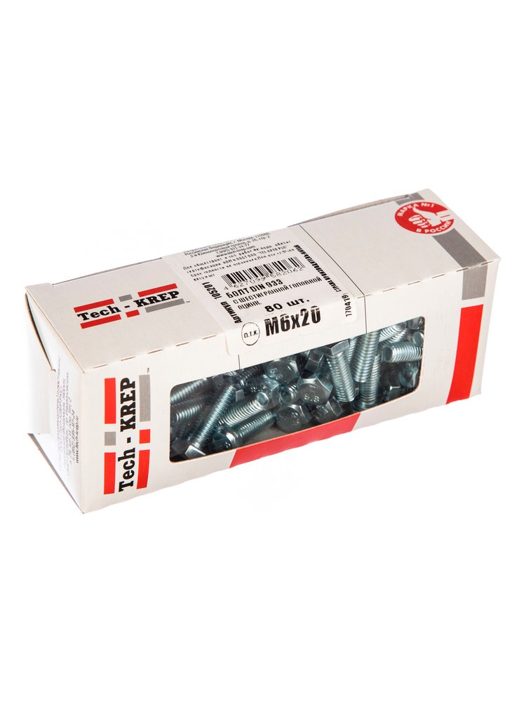 Болт DIN933 с шестигранной головкой оцинк. М6х20 (80 шт) - коробка с ок. Tech-Krep в Комсомольск-на-Амуре