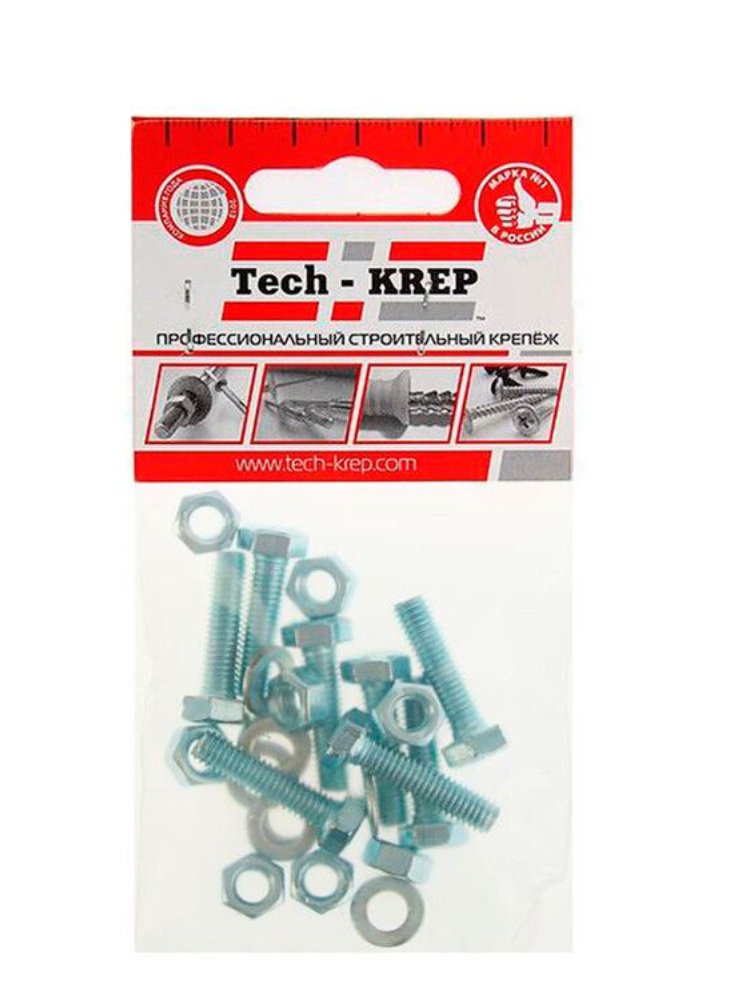 Болт DIN933 с шестигранной головкой оцинк. М6х20 + гайка + шайба (8 шт) - пакет Tech-Krep в Комсомольск-на-Амуре
