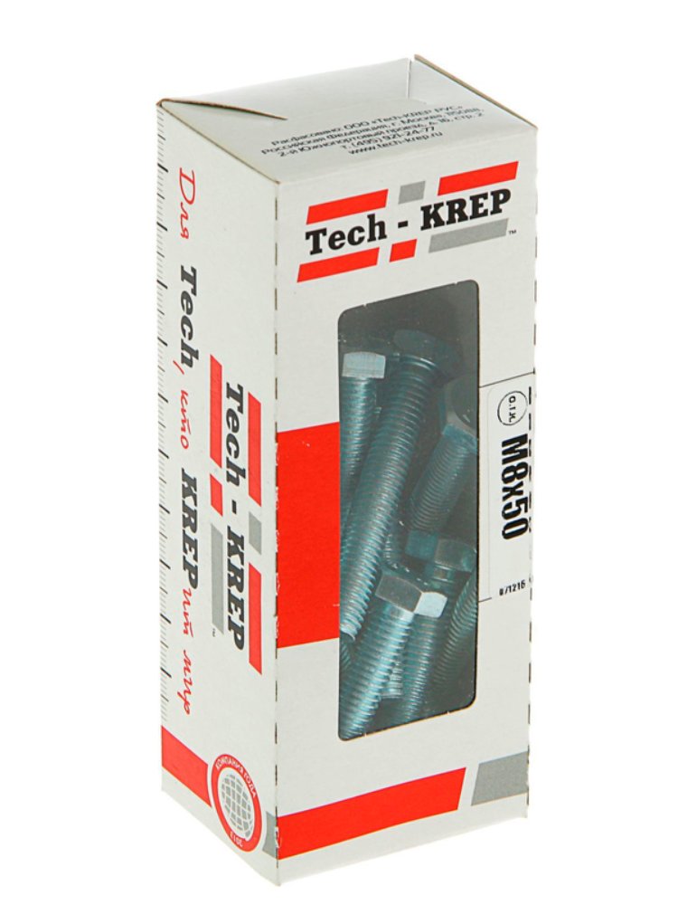 Болт DIN933 с шестигранной головкой оцинк. М8х50 (20 шт) - коробка с ок. Tech-Krep в Комсомольск-на-Амуре