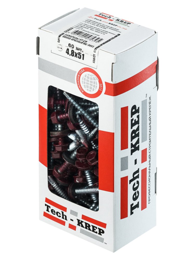 Саморез КР св. 4,8х51 RAL-3005 (винно-красный) (60 шт) - коробка с ок Tech-Krep в Комсомольск-на-Амуре