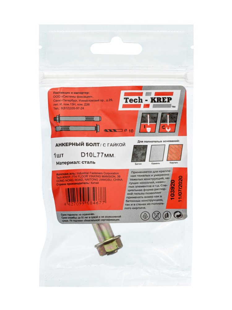 Анкерный болт с гайкой 10х77 (1 шт) - пакет Tech-Krep в Комсомольск-на-Амуре