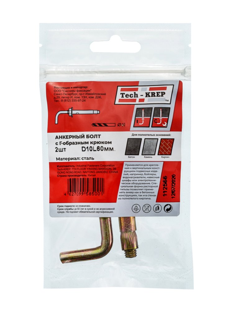 Анкерный болт с Г-обр. крюком HL 10x60 (2 шт) - пакет Tech-Krep в Комсомольск-на-Амуре