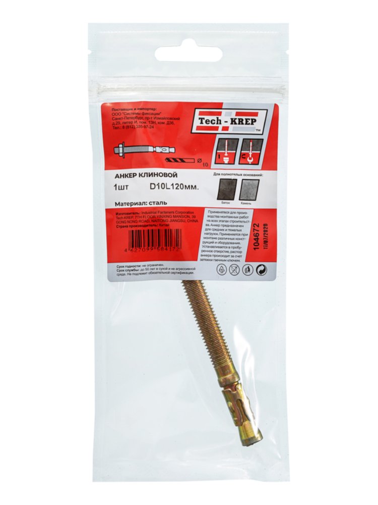 Анкер клиновой 10х120 (1 шт) - пакет Tech-Krep в Комсомольск-на-Амуре