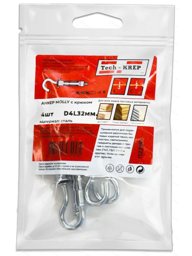 Анкер (дюбель) Молли RO (с полукольцом) М4х32 (4 шт) - пакет Tech-Krep в Комсомольск-на-Амуре