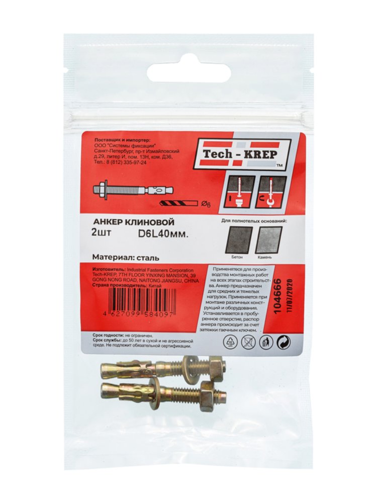 Анкер клиновой 6х40 (2 шт) - пакет Tech-Krep в Комсомольск-на-Амуре