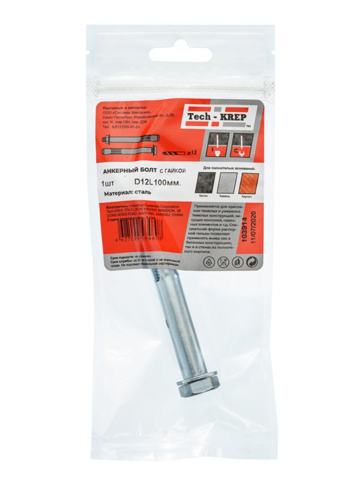Анкерный болт с гайкой 12х200 (1 шт) - пакет Tech-Krep в Комсомольск-на-Амуре