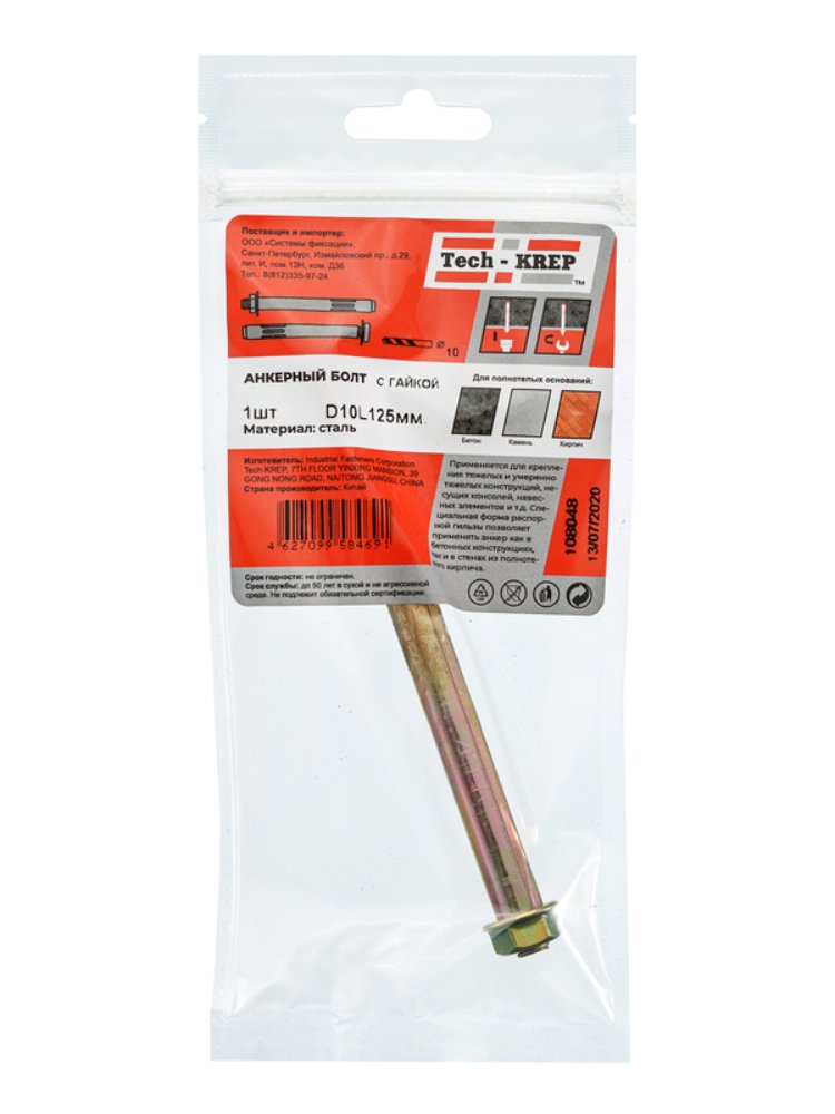 Анкерный болт с гайкой 10х125 (1 шт) - пакет Tech-Krep