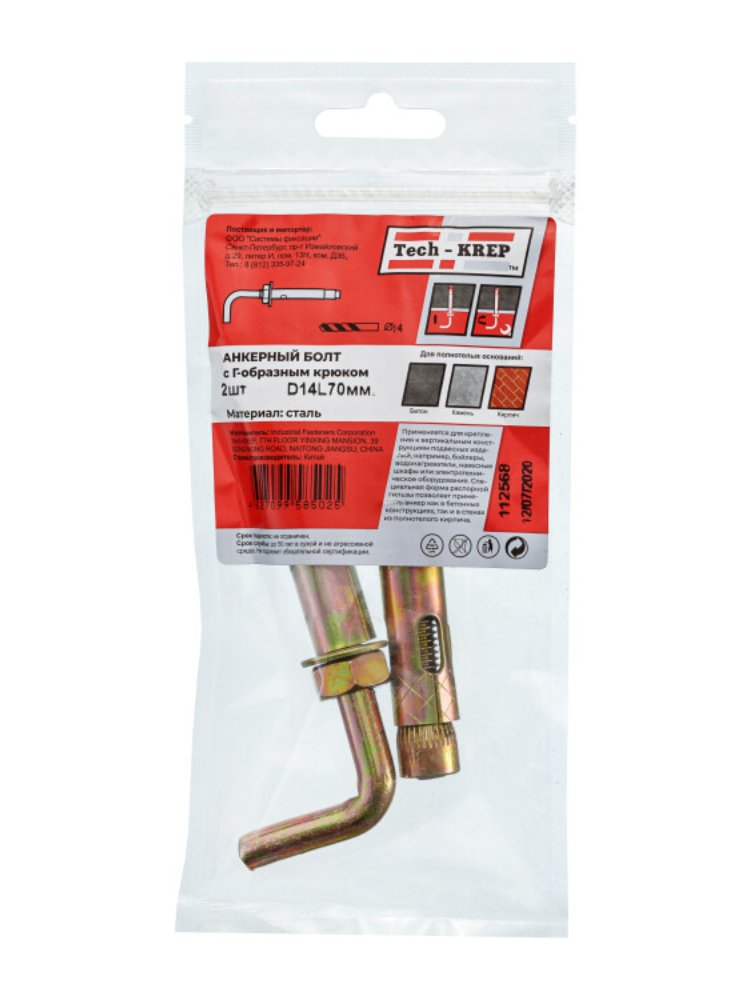Анкерный болт с Г-обр. крюком HL 14x70 (2 шт) - пакет Tech-Krep в Комсомольск-на-Амуре