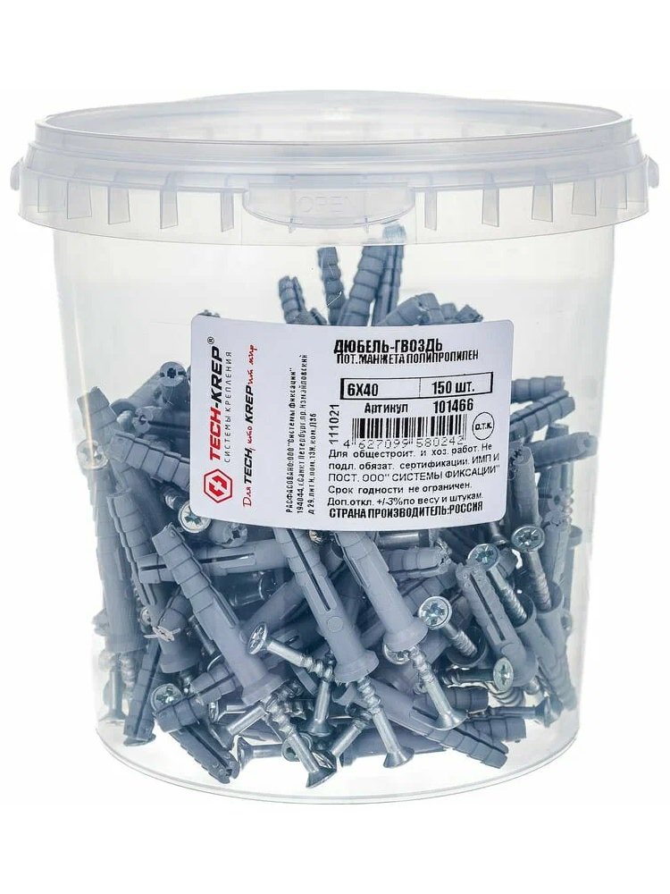 Дюбель-гвоздь 6х40 пот. манжета (полипропилен) черный (150 шт) - ведро Tech-Krep в Комсомольск-на-Амуре