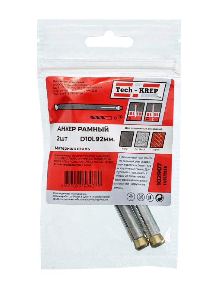 Дюбель метал. рамный 10х92 (2 шт) - пакет Tech-Krep