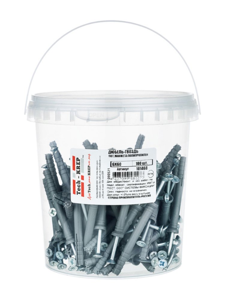 Дюбель-гвоздь 6х60 пот. манжета (полипропилен) черный (100 шт) - ведро Tech-Krep