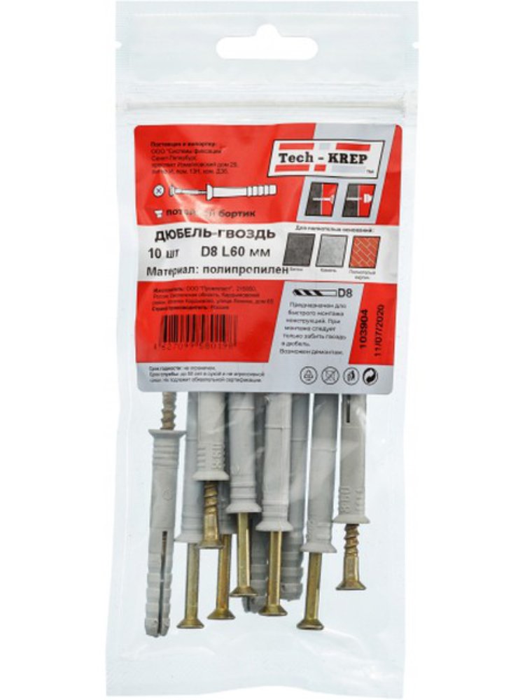 Дюбель-гвоздь 8х60 пот. манжета (полипропилен) черный (10 шт) - пакет Tech-Krep