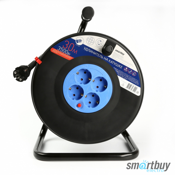 Удлинитель 4 гнезда на катушке 30м с з/к 16А ПВС 3х1,5 IP40 Smartbuy
