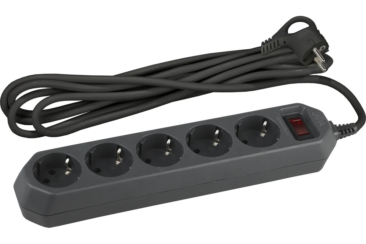Фильтр сетевой 5 гнезд 5м с з/к 10А черный(баз.ур.защ.) ЭРА