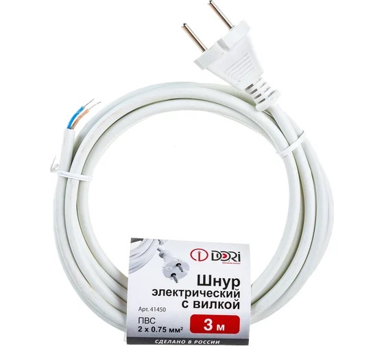 Шнур с вилкой 3м белый ПВС 2*0,75 в Комсомольск-на-Амуре