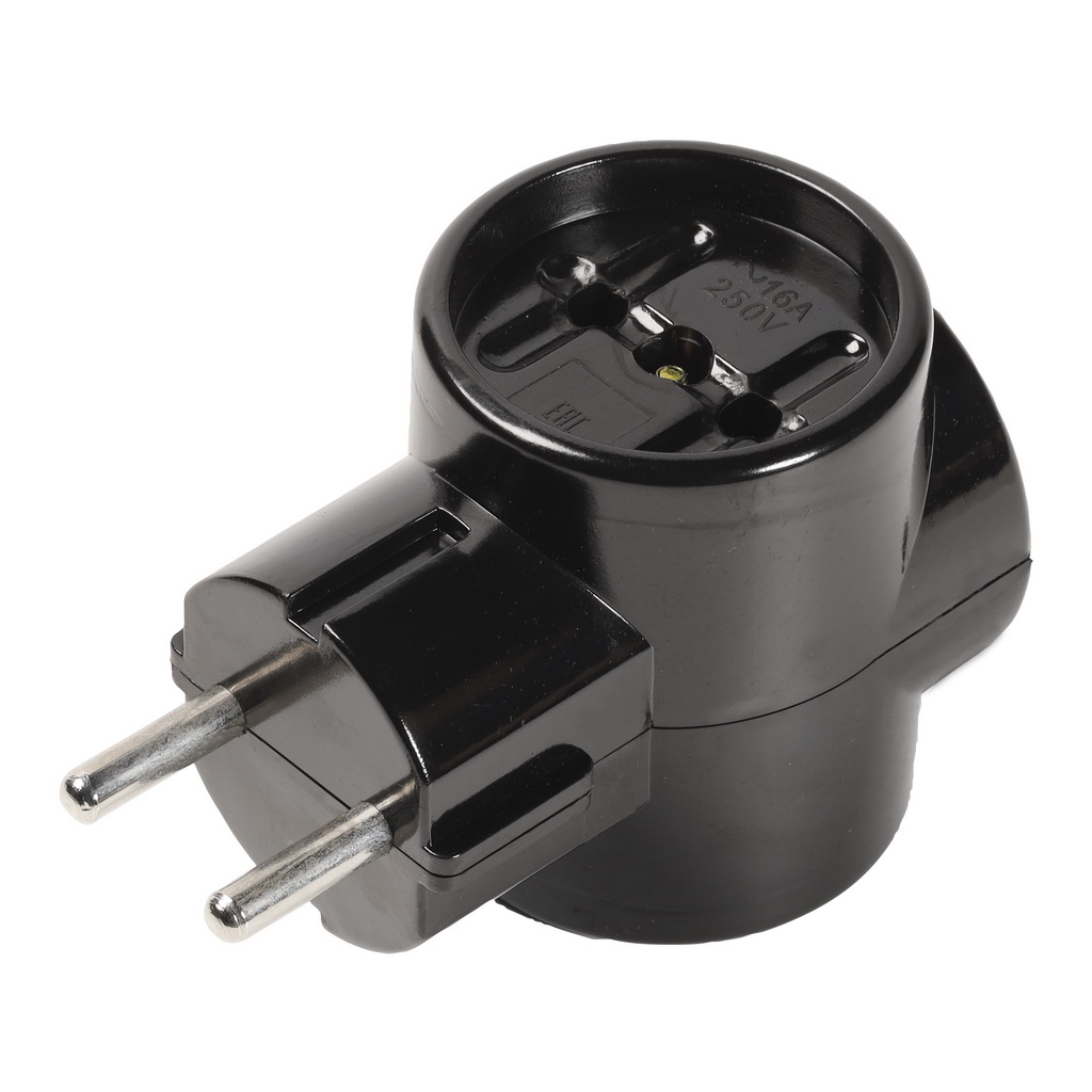 Разветвитель электрический 3 гнезда без з/к круглый 16А 250B черный Smartbuy в Комсомольск-на-Амуре