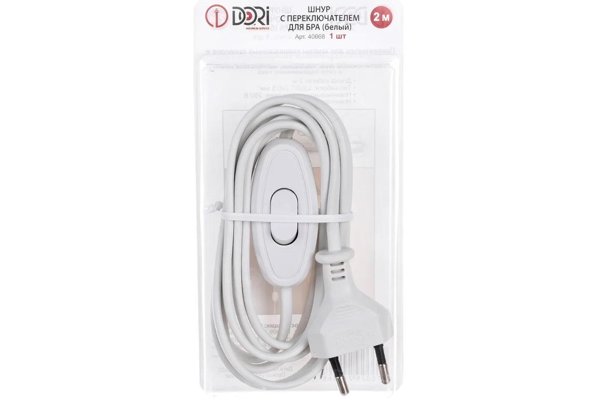 Шнур с переключателем для светильников бра, настольных ламп, белый 2.5А 250В (2м) в Комсомольск-на-Амуре