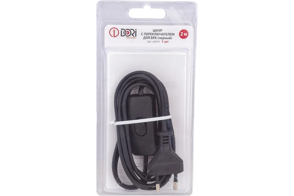 Шнур с переключателем для светильников бра, настольных ламп, чёрный 2.5А 250В (2м)