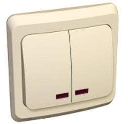 Выключатель 2-клавишный С/У с подсветкой 10А, кремовый Этюд SE в Комсомольск-на-Амуре