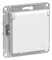 Розетка 1-постовая с з/к со шторками с крышкой 16А механизм, белая AtlasDesign SE в Комсомольск-на-Амуре