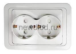 Розетка 2-постовая С/У с з/к со шторками белая CLASSICO 2128-х IN HOME в Комсомольск-на-Амуре