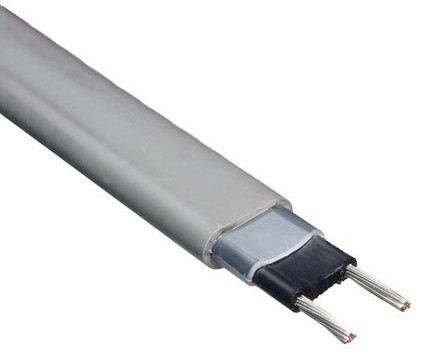 Греющий кабель сконструирован из двух параллельных проводников, по которым при его использовании течёт переменный ток (220 В, 50 Гц). Проводники соединены матрицей из полимерного материала, в который добавлен углерод. Такая матрица представляет собой полупроводник с непостоянным электрическим сопротивлением. Оно меняется по следующим правилам: ― при понижении температуры окружающей среды (и, следовательно, матрицы) её сопротивление растёт. Это влечёт за собой повышение температуры кабеля и канализационной трубы, на которой он закреплён.