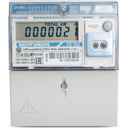 Счетчик 1ф. многотарифный СЕ 102 M R5.1 145-J кл. точн. 1 230 V 5-60А (din-рейка) ЭНЕРГОМЕРА в Комсомольск-на-Амуре
