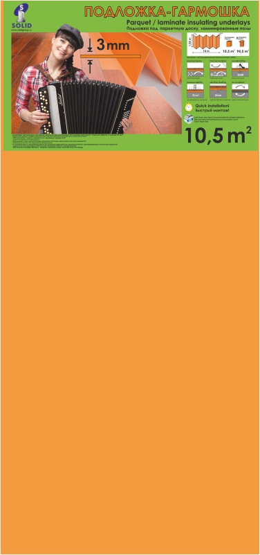 Подложка-гармошка Солид с пароизоляцией 3,0мм, оранжевая (уп.20шт/10кв.м) в Комсомольск-на-Амуре