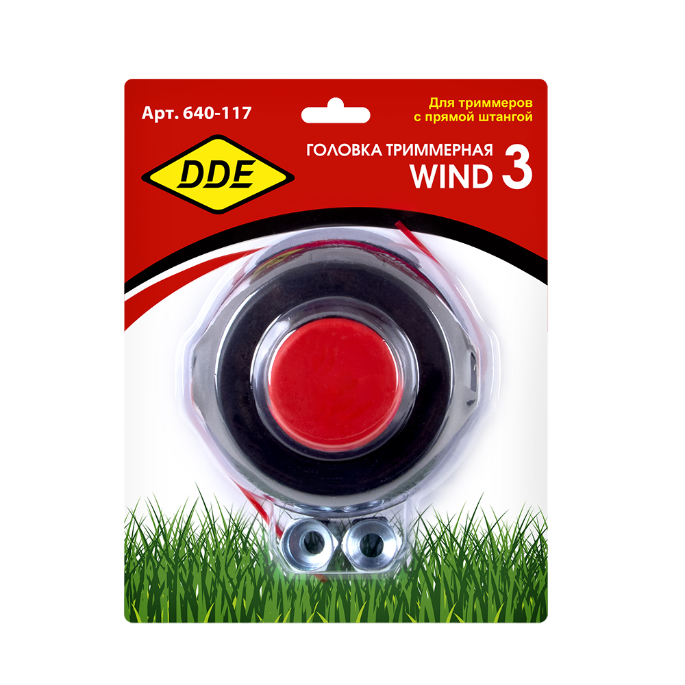 Головка триммерная полуавтоматическая DDE Wind 3 - аналог HUS T25. В комплекте адаптеры: М10х1,25 мм левая + М10х1,0 мм левая. Подходит ко всем бензиновым и электрическим триммерам со штоком редуктора диаметром 10мм, левой резьбой с шагом 1.0 или 1.25 мм. Головка является полуавтоматической, что упрощает подачу корда.