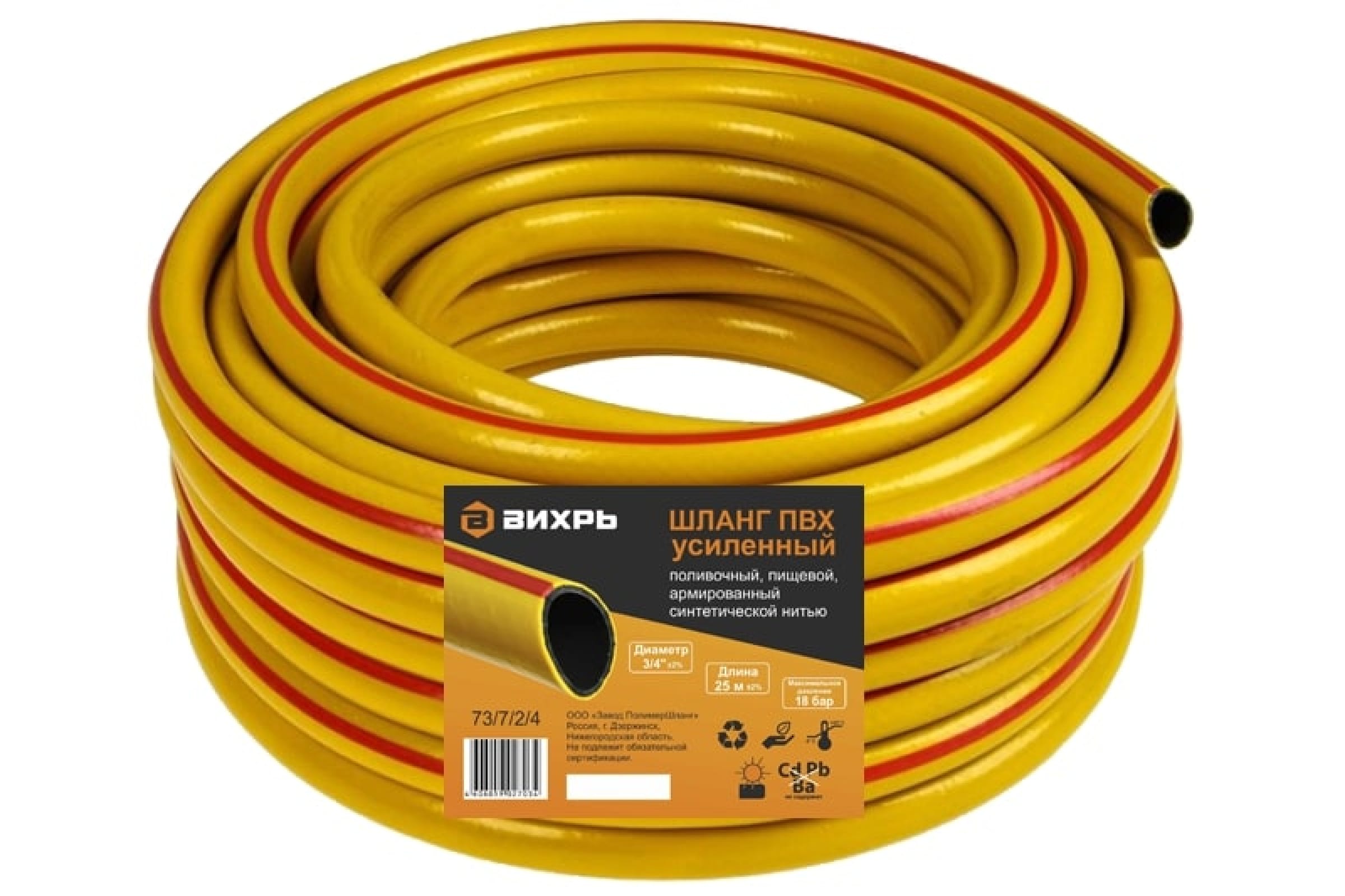 Шланг поливочный армированный 25м, D3/4, Люкс, толщина стенки 1,85мм, зеленый