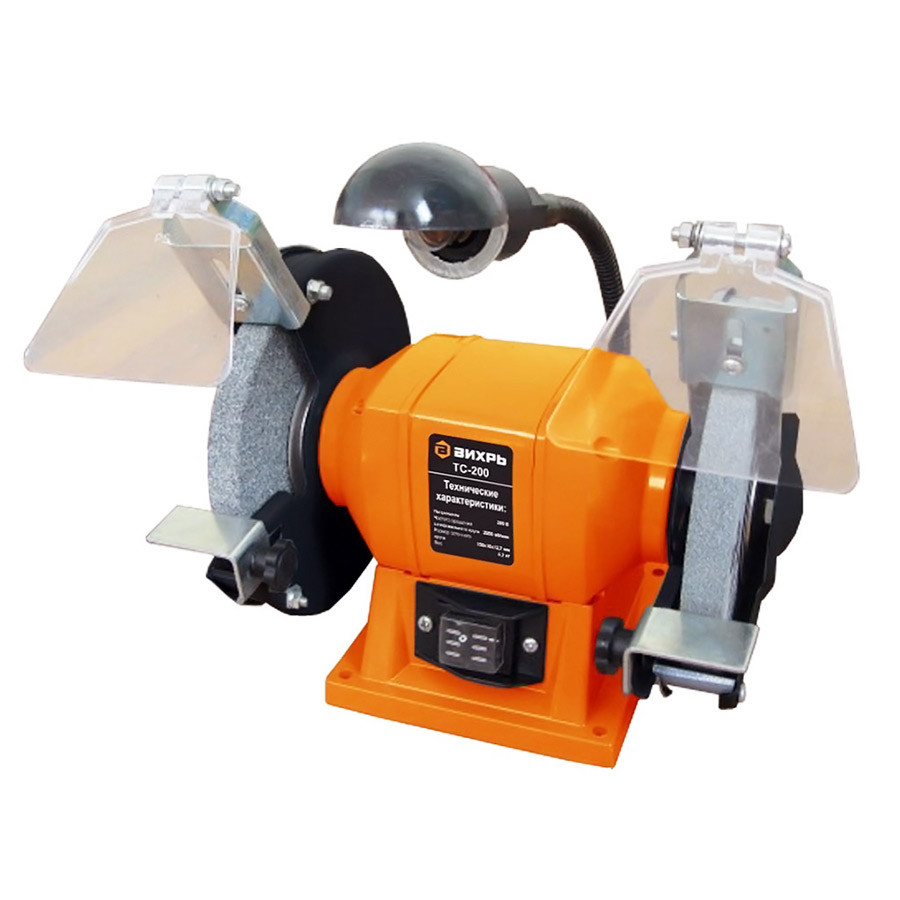 Станок точильный (точило для заточки инструмента) ВИХРЬ относится к типу универсальных лёгких заточных станков с приводом от электромотора и является низковольтным оборудованием. Точильный станок предназначен для заточки ножей, стамесок и другого режущего инструмента. Машина состоит из алюминиевого корпуса, в котором расположен асинхронный электродвигатель. На валу ротора двигателя крепятся шлифовальные круги. Для безопасности на корпусе машины смонтированы защитные кожухи с искрогасителем, прозрачным экраном и рабочим упором. Всегда во время работы используйте эти приспособления.