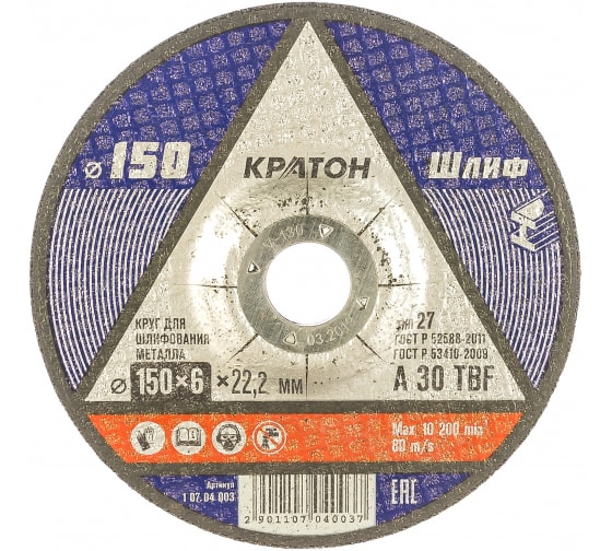 Круг зачистной по металлу КРАТОН, 150*6*22,2мм в Комсомольск-на-Амуре