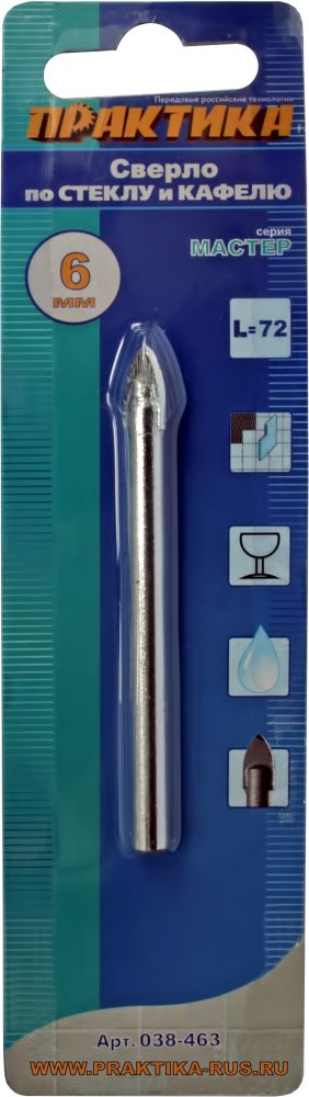 Сверло по стеклу ПРАКТИКА 6х72 мм "Мастер" в Комсомольск-на-Амуре