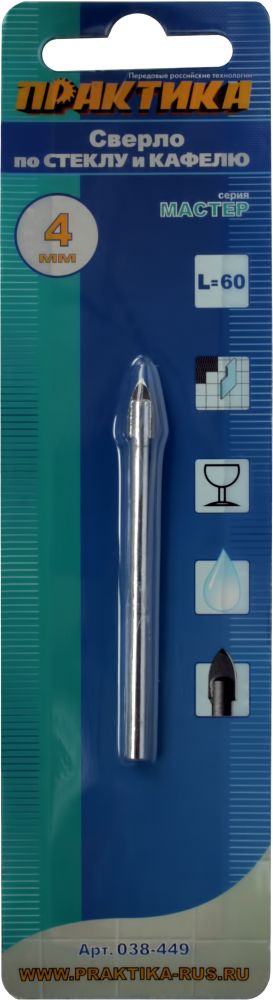 Сверло по стеклу ПРАКТИКА 4х60 мм "Мастер" в Комсомольск-на-Амуре